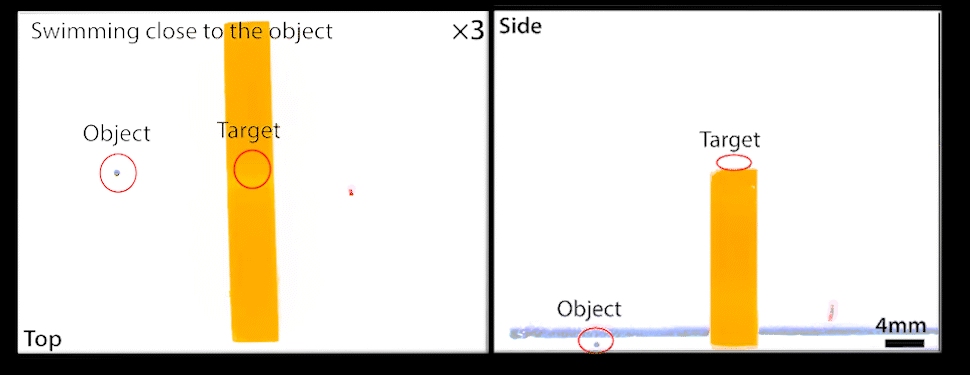 团队开展了丰富的体外验证试验。如图2所示,单个机器人可完成三维物体搬运、逆流游动等任务。在胃部病灶模型中(图3),机器人群成功实现了向病灶定向聚集、调节形态并稳定贴附。团队还展示了机器人群在超声成像引导下的运动控制、抗重力运动等能力。